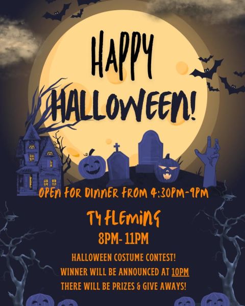 Ty Fleming TONIGHT! Join us for dinner and hang around for Ty Fleming & our Halloween Costume Contest🎃👻