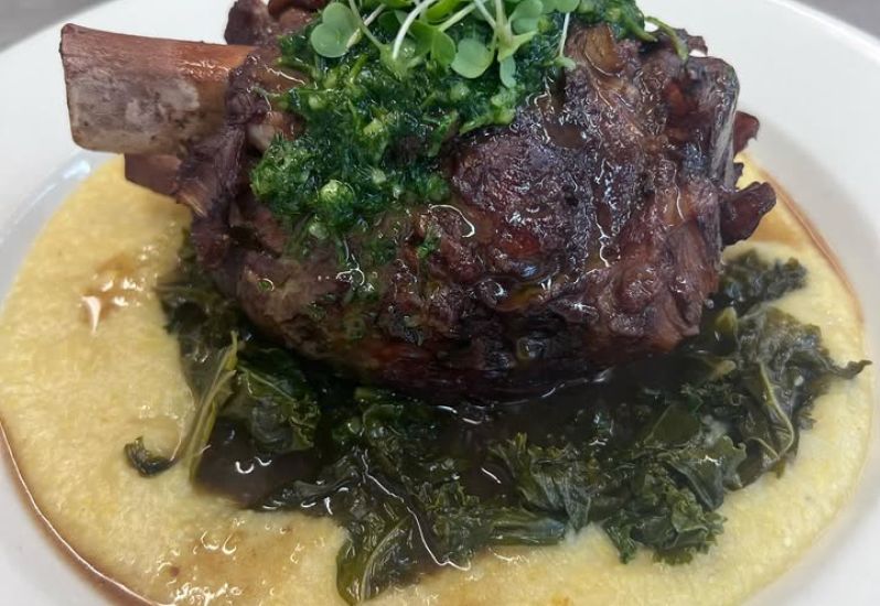 Chef Eric’s Slow Braised Ossa Bucco over Cheese Grits, Tender Kale, and topped with Lemon Parsley Gremolata! Join us for dinner or tapas from 4:30-8:00pm this evening! #waterfrontdining #ossobuco