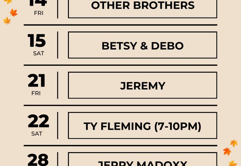 Our music lineup for November is looking great! Come out for some live music with food & drink specials.