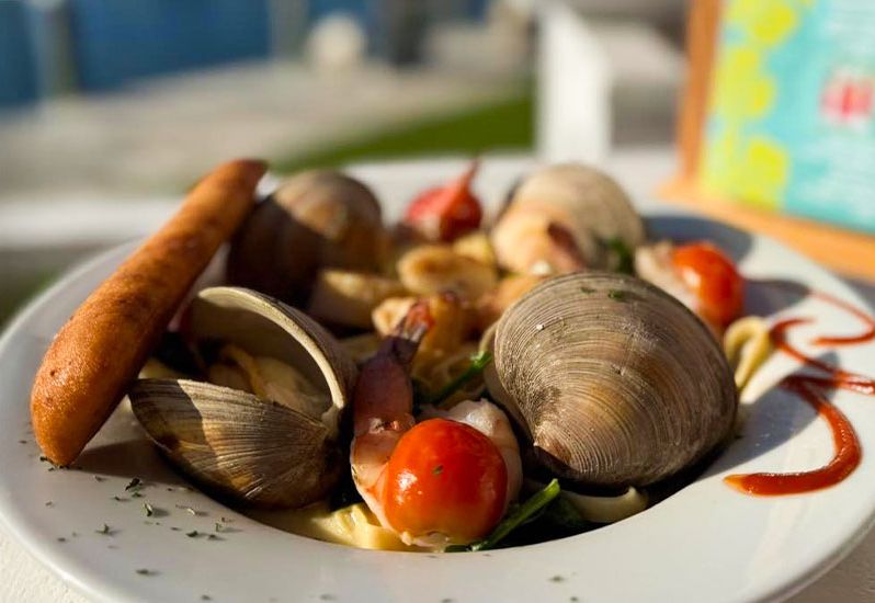 We are open for lunch and dinner! Come out and try our Seafood Pasta with Calms, Shrimp & Scallops.